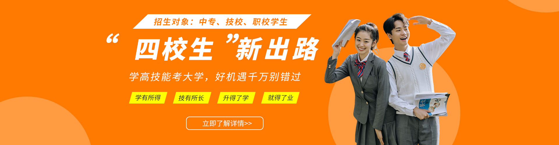 查看详情技能傍身,前途不愁。变身技能男神或创业当老板。